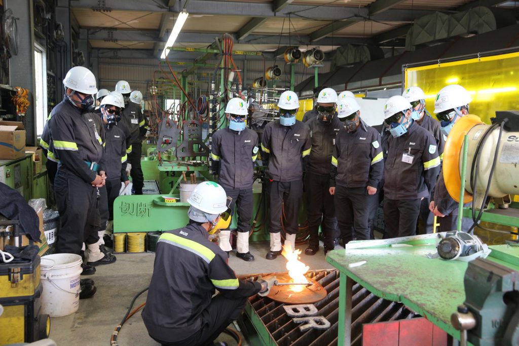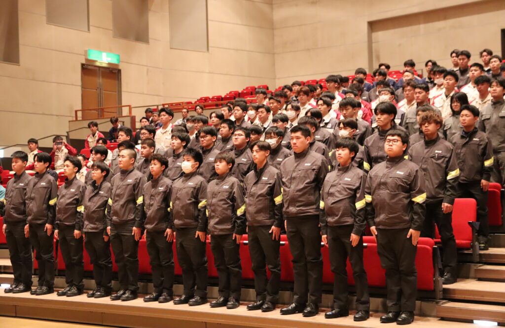今治地域造船技術センターの会長を務める当社今治工場長、田頭敬作常務取締役からは「研修生同士の交流を深めつつ、同世代のライバルたちと切磋琢磨して技量を身につけてください。この研修で習得する技能や横のつながりは、きっと将来の財産になるはずです。」との激励の言葉が贈られました。